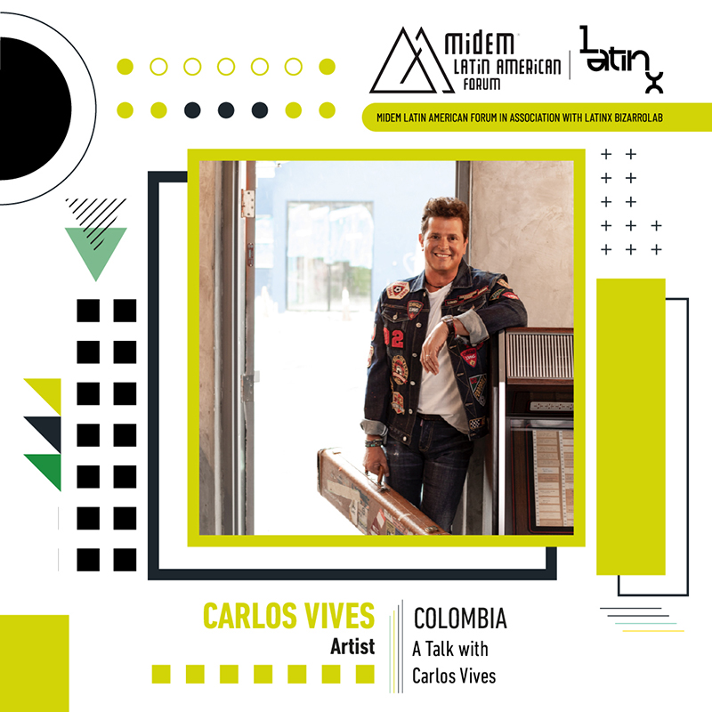 El artista hablará sobre su experiencia en la industria de la música latina, los sonidos, la escena de la tecnología musical y los cambios que ha atravesado desde que comenzó su carrera hasta los nuevos retos a los que se enfrenta hoy día. Carlos Vives, quien siempre ha defendido su sonido característico y ha llevado sus raíces muy en alto, participa de este evento virtual presentado por Midem en asociación con el LatinX Bizarrolab.
