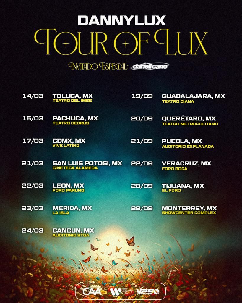 Esta semana, DannyLux fue destacado en la docu-series de SoundCloud, SCENES: Música Mexicana presentada por Toyota. También se presentan los cantantes sierreños, Ivan Cornejo, Conexión Divina, Xavi, y Jasiel Nuñez, mientras interpretan una de sus canciones y comparten sus cautivadoras historias individuales. No te pierdas la oportunidad de ver a DannyLux de gira este año. Los fans podrán verlo en Vive Latino en la Ciudad de México el 17 de marzo o en varias ciudades en México en su nueva gira, Tour Of Lux, con 13 paradas esta primavera y otoño. ¡Más ciudades por venir!
