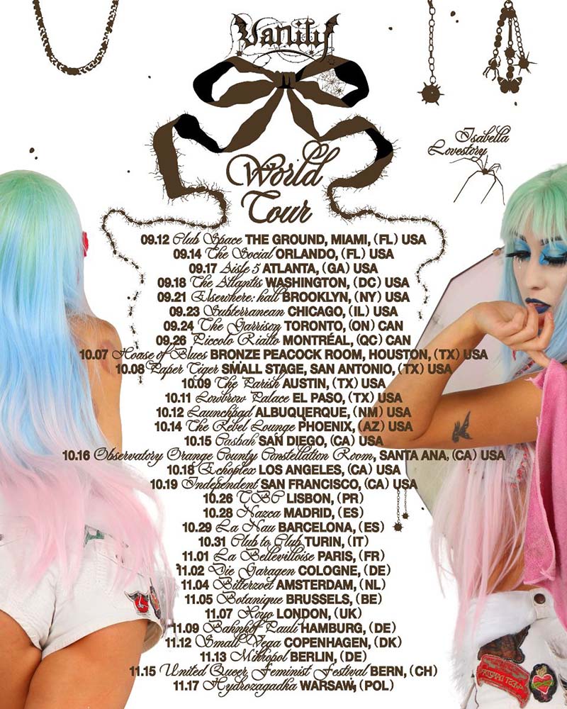 Isabella comenzó el año con una serie de espectáculos en vivo eclécticos en los escenarios de festivales, incluidos We Love Green de París, Primavera Sound de Barcelona y LadyLand Festival de Nueva York. Su gira Vanity World Tour la llevará por América del Norte y Europa, acompañada por la emergente cantante de pop Cece Natalie  y el emergente DJ y productor Ali RQ en América del Norte. La gira por Norteamérica abarcará 18 fechas en todo el continente a partir del viernes 12 de septiembre en Miami, seguida de su etapa europea que comienza el 26 de octubre en Lisboa, Portugal, y se extenderá hasta el 17 de noviembre. Las entradas restantes están disponibles en isabellalovestory.com.