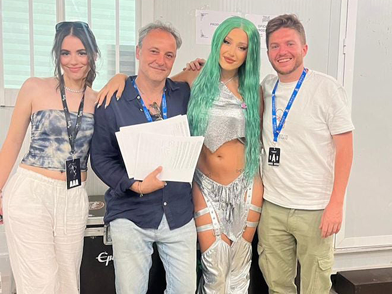 De Izquierda a derecha, Marta de Dios (Product Manager records & GTS), Narcis Rebollo (CEO Universal España y Portugal), Lola Indigo y Mikel Escobar (Management GTS & AR records)